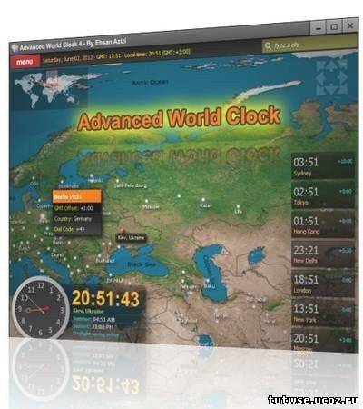 Информация о программе Advanced World Clock: Название: Advanced World Clock 4.0 Релиз выпущен: 2012 Платформа: Windows NT/Me/2000/XP/2003/Vista/7 Язык интерфейса: Английский Лицензия: Freeware Размер файла: 3,39 Мб