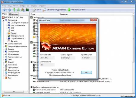 Название программы: AIDA64 Extreme Edition Версия программы: 2.50.2045 Beta Адрес официального сайта: aida64.com Язык интерфейса: Multi/Русский Лечение: в комплекте Тип лекарства: готовые серийники Размер: 18,7 MB
