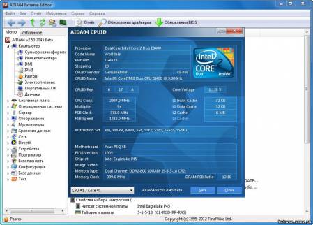 Описание: AIDA64 (бывший Everest) - утилита является мощным средством для идентификации и тестирования практически любых компонентов персонального компьютера под управлением операционных систем семейства Windows. Предоставляет вам детальные сведения обо всем аппаратном и программном обеспечении, кроме того, при помощи встроенных модулей для тестирования и калибровки можно провести дополнительную проверку отдельных подсистем ПК. Выводит подробные сведения обо всем аппаратном и программном обеспечении, установленном в системе.