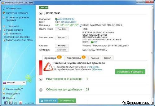 Преимущества DriverPack Solution: • Автоматическая установка драйверов: установит все драйвера на практически любой компьютер всего за ~5 минут • Экономия времени: не надо тратить время на поиск драйверов, установит драйвера за несколько кликов • Любой драйвер для любого компьютера: все драйвера на одном DVD-диске! Упростит загрузку новых драйверов из Интернета • Возможность обновления драйверов: обновит существующие драйвера до более актуальных версий • Windows XP / Vista / 7 / 8 (x86-x64): поддерживает все современные ОС! Как 32-х так и 64-х битных версий! • Удобство в использовании: простой и понятный интерфейс • Возможность индивидуальной доработки: имеет открытый исходный код