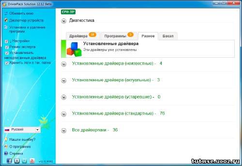 Плюсы в использовании программы: • интерфейс, дружелюбный и интуитивно понятный • интеллектуальная технология классификации драйверов • несколько режимов установки (для профессионала, для начинающего пользователя) • многоязычность (не требует лингвистических познаний и усилий): Английский, Русский, Украинский, Немецкий, Французский, Итальянский, Испанский, Турецкий, Азербайджанский, Голландский, Литовский • проверка доступности новых версий программы