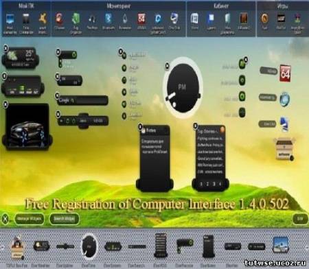 Free Registration of Computer Interface - эта прикольная утилита позволит вам настроить свой рабочий стол украсить его и установить нужные инструменты для быстрого запуска. Программа лёгкая в использовании так что каждый сможет отредактировать свои виджеты на рабочем столе и настроить их под себя.