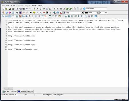 Hybrid L v3.5.0.2 - редактор HTML с обширным диапазоном функций. Включает в себя редактор исходного кода, встроенный браузер просмотра и конструктор, использующий особенности WYSIWYG для редактирования HTML-страниц. Hybrid L предназначен в первую очередь для людей, не обладающих знанием HTML. Вы получите полный доступ к кодам и полную свободу при проектировании HTML страниц.