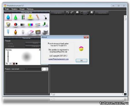 Название: PhotoInstrument 5.7 Build 573 Rus Portable by Valx Год выпуска: 2012 Платформа: Windows 2000/XP/Vista/7 Язык интерфейса: русский Лекарство: Вшито Размер: 6,85 Мб