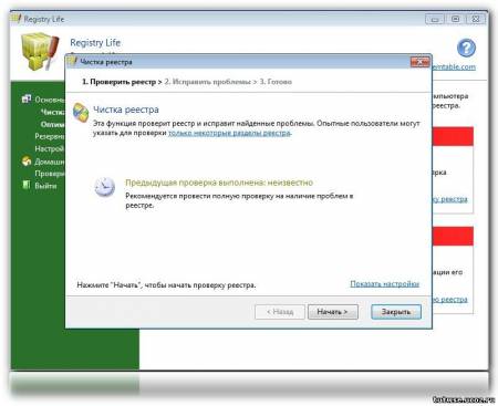 Описание: Registry Life - программа поможет исправить ошибки в реестре и оптимизировать его, повысив скорость работы системы и ее стабильность. Если Вы купили новый компьютер, то вначале он способен работать на пике своей производительности. Однако со временем скорость работы компьютера может уменьшаться. Утилита для повышения производительности компьютера за счет исправления ошибок в реестре, его дефрагментациии и сжатия. В отличие от других подобных бесплатных программ Registry Life содержит в себе оба инструмента одновременно (для очистки и для оптимизации). Функция очистки реестра выполнит поиск и исправление большого числа различных категорий проблем в реестре. Так, она позволит избавиться от неверных элементов в разделах автозапуска, контекстном меню браузера, проверит ассоциации типов файлов, общие библиотеки, зарегистрированные в реестре приложение и другие разделы реестра.
