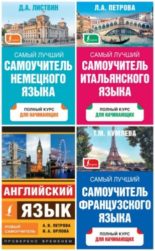 Список книг: -Самый лучший самоучитель французского языка. -Самый лучший самоучитель итальянского языка -Английский язык. Новый самоучитель -Самый лучший самоучитель немецкого языка