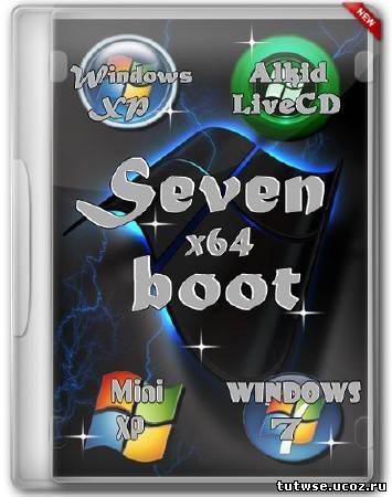 Seven-boot - загрузочный образ для установки и восстановления системы на основе х64 систем. в образ входит Windows 7 SP1, Alkid Live CD (30.03.12), Hiren's BootCD 15.1 (lexapass), Windows XP Mini и RusLive 2010 Micro.