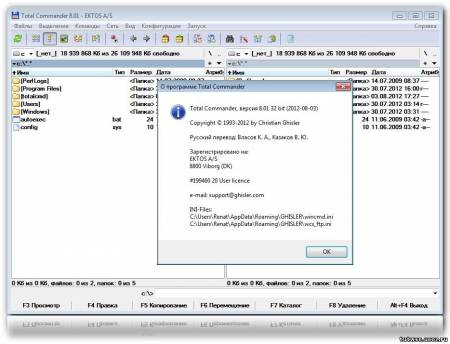 Ключевые возможности: » Использование горячих клавиш как в оригинале DOS » Поддержка перетаскивания объектов с помощью функции Drag-and-Drop » Расширенное копирование, перемещение, переименовывание и удаление целых директорий » Обработка и просмотр архивов как субдиректории папок » Командная строка для простого запуска программ с указанными параметрами » Расширенная функция поиска с полно-текстовым поиском в любых файлах между различными дисками » Встроенный просмотрщик файлов (клавиша F3) для просмотра файлов любых размеров в HEX, двоичном или текстовом формате » Внутренняя функция распаковки ZIP-файлов без вмешательства внешних утилит » Настраиваемое главное меню программы » Внутренние распаковщики архивов ZIP, ARJ, LZH, GZ, TAR, RAR и ACE форматов » Внутренний упаковщик ZIP-архивов » Работа с сетевыми дисками и FTP-серверами » И множество других возможностей » Полная поддержка Unicode в большинстве функций, где это возможно, включая FTP, встроенный ZIP-упаковщик и интерфейс плагинов » Файл справки теперь по умолчанию поставляется в HTML-формате (CHM) » Поддержка в большинстве файловых операций имён файлов, превышающих 259 символов (до 1022) » Сравнение по содержимому позволяет сравнивать текстовые файлы различного типа, например, ANSI и UTF-8 » Заголовок файловой панели (путь к текущему каталогу) может действовать как управляемая мышью или с клавиатуры навигационная панель » Опция, позволяющая отображать содержимое другой панели инструментов (BAR-файл) в виде выпадающего меню кнопки на родительской панели вместо переключения между панелями » Отображение в списке FTP-подключений значков и иерархической структуры с пользовательскими виртуальными папками » Защита сохранённых FTP-паролей с помощью мастер-пароля, использующего шифрование по алгоритму AES256 » FTP, режим PORT: Возможность задать внешний IP-адрес интернет-маршрутизатора » Запуск через параметры командной строки внутреннего просмотрщика, инструментов сравнения по содержимому и синхронизации каталогов без открытия основного окна Total Cоmmander » Редактируемые по Ctrl+Z комментарии в формате descript.ion теперь имеют максимальную длину в 4095 символов и поддерживают переносы строк » Опция для синхронизации также и пустых каталогов, опция для копирования только заданных свойств файла » Добавлена поддержка контрольных сумм в формате SHA1 » Возможность использования клавиши Windows для пользовательских сочетаний клавиш » На 64-битных версиях Windows можно использовать 64-битные расширения оболочки в контекстном меню » Новая внутренняя команда cm_SwitchX64Redirection, чтобы включать/отключать перенаправление обращений к папке System32 под 64-битной Windows » Внутренняя распаковка многотомных RAR-архивов а также RAR-архивов, где зашифрованы имена упакованных файлов » Копирование файлов/каталогов за одну операцию в несколько выделенных каталогов-получателей » Быстрый поиск с диалогом поиска: Вывод кнопки, позволяющей отображать только файлы/каталоги, соответствующие фильтру » Переключение кодировки символов во внутреннем просмотрщике. » Внутренняя система файловых ассоциаций, например, при использованим Total Commander с USB флэш-диска