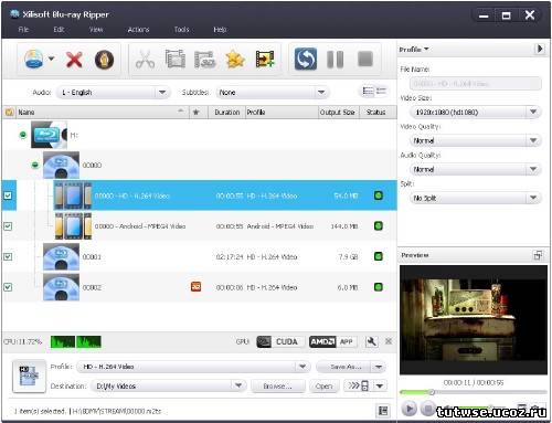 Xilisoft Blu-ray Ripper - это универсальный инструмент, с помощью которого вы можете конвертировать blu-ray видео (M2TS) в High-Definition форматы (H.264/MPEG-4 AVC, Apple TV h.264 720P, HD WMV, MPEG-2/MPEG-4 TS HD Video) с большой скоростью и последующем сохранением HD качества.